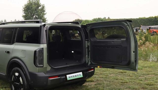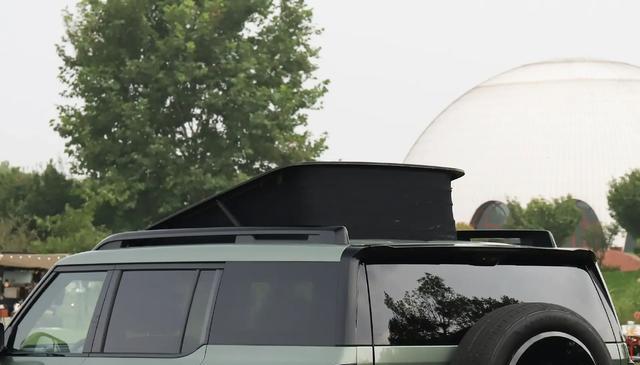 其它配置方面,虽说车辆还没有完全公布舒适支持,但它在户外用车方面确实还是有一套的。车辆打造了电动车顶,它能够在30秒内完成车顶360mm电动抬升,而且这里的篷布是可拆卸的,并支持雨天自动关闭、防风、防蚊虫等不同功能。此外,车辆的电动尾门也采用了多功能设计,除了启闭等功能外,它还集成了可调桌板、磁吸置物台以及电磁炉等等配件,加上车辆还支持对外放电功能(最大功率为6.6kW),这甭管是说多功能用车、近郊郊游,还是户外露营等等,这些设计确实挺有趣的,也会比我们提到的豹5等车型更丰富一些。