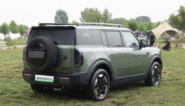 没错,智趣烈马也属于是Bronco的一员,它在车头的格栅内也会悬挂着巨大的“BRONCO”英文标识,不过,车辆是一台仅限中国市场的产品,或者我们能把它视为福特开启本土化的新举措。就是视觉上来看,智趣烈马确实有跟烈马很相似的主体造型,不过,在对于灯组、保险杠,还有更多细节边缘的处置上,智趣烈马的风格要温柔些,或者说不像烈马那么像一台越野车。