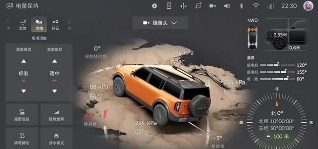 还需提到的是,智趣烈马除了全系标配双电机电四驱外,还会在前后桥上布局机械差速锁,在缺少分动箱的情况下,它们也能为车辆的独立脱困能力带来重要加持。当然,车辆还有智能越野模式,能通过协同感知的方式来进行预警与各系统的自适应调节,这可能会是它通过智能方式来适应适应多地形驾驶的重要砝码。