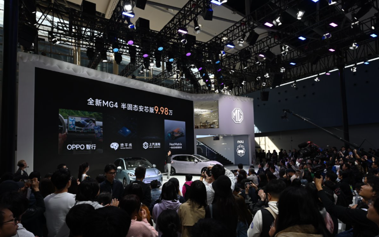 在此次广州车展上,MG还正式发布了全新品牌IP MOLI。MOLI将首发搭载于全新MG4半固态安芯版,出现在车机界面、语音交互及导航车标等场景。其他版本车型也将通过OTA逐步推送该形象,更多功能与互动将于2026年第二季度上线。